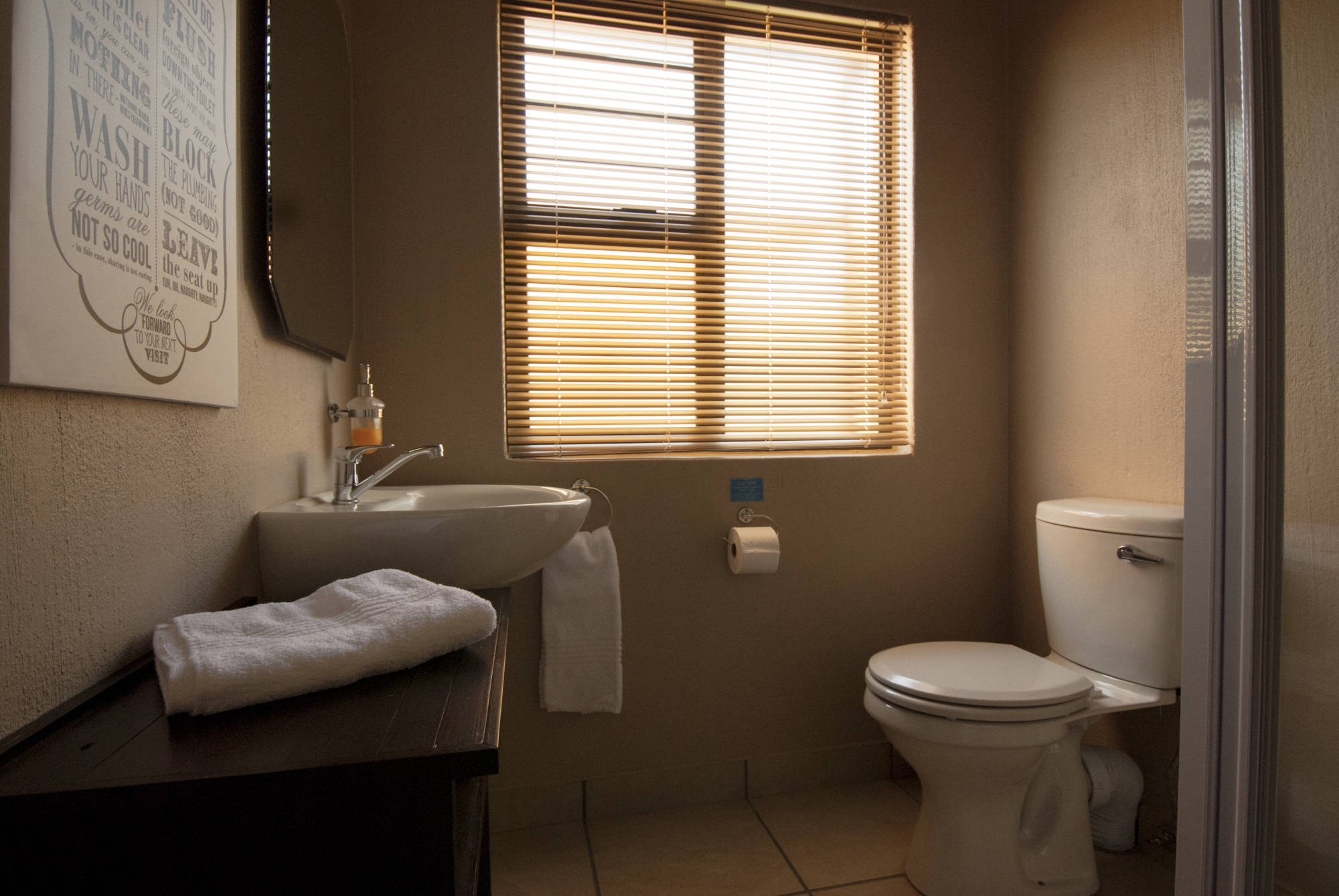 All rooms have crisp white linen, clean towels, extra blankets, electric blankets and wall-mounted panel heaters for the chilly nights. There is also a small electronic safe for your valuables as well as a hairdryer.